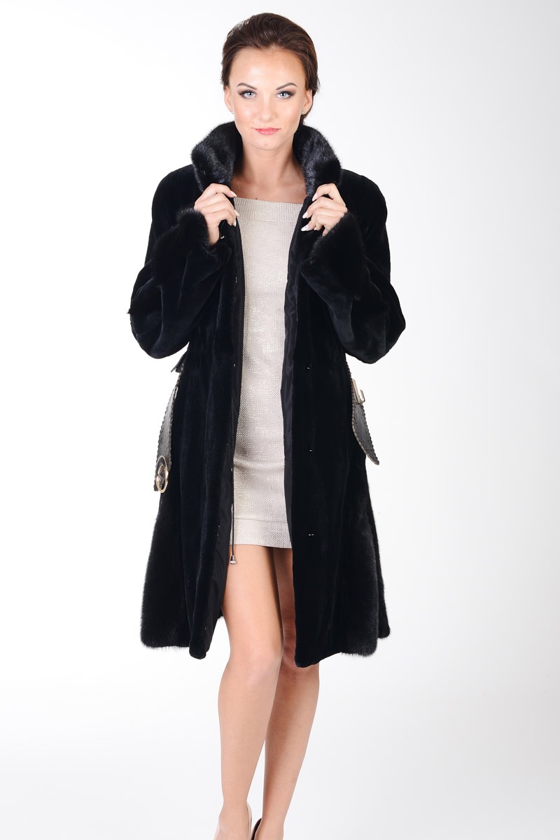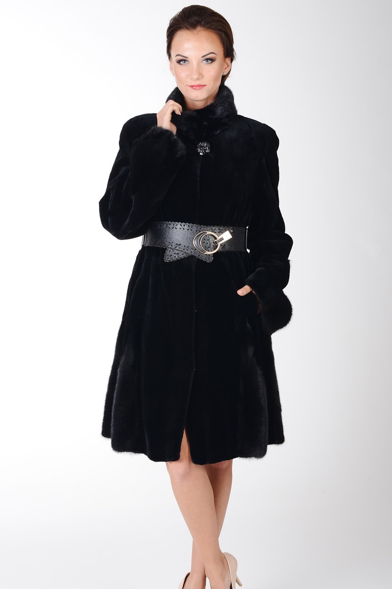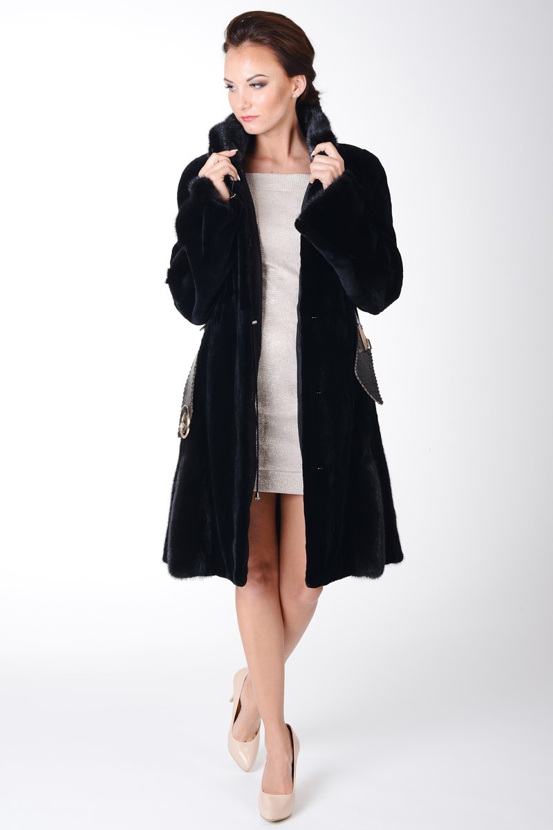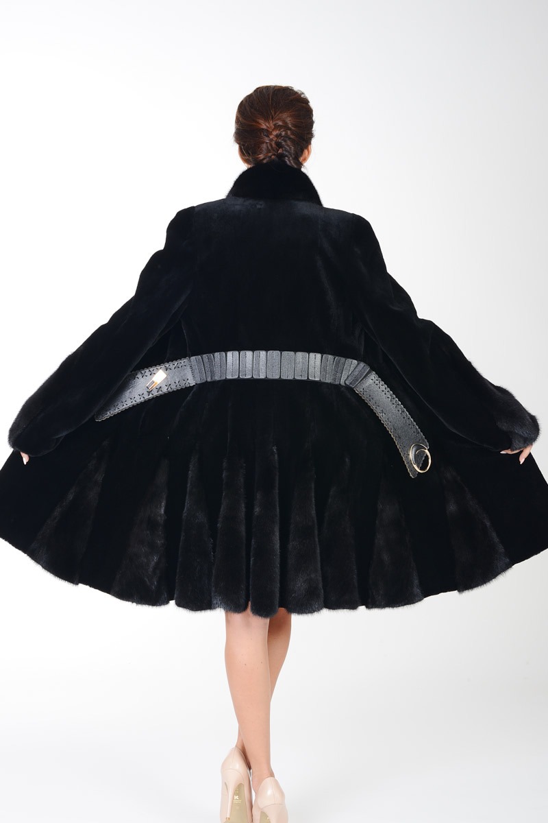 Futro wyróżnia delikatnie rozkloszowany klasyczny fason i kołnierz na stójkę, dodający mu szykowności. Na uwagę zasługuje wykonany ze skóry licowej pasek w talii. Dzięki niemu, można stylowo podkreślić sylwetkę, a zarazem nadać stylizacji wyrazistego charakteru.